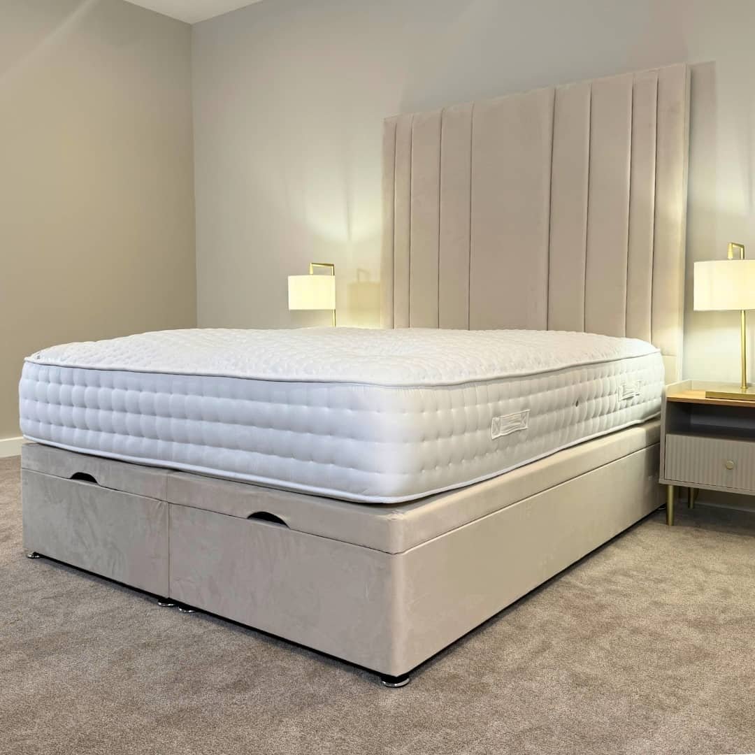 The Allure Ottoman Bed pairs the striking Allure headboard with a smart, space-saving storage base. The headboard remains the centrepiece, featuring tall, individually panelled vertical lines that create depth and a refined, luxury feel without overpowering the room.