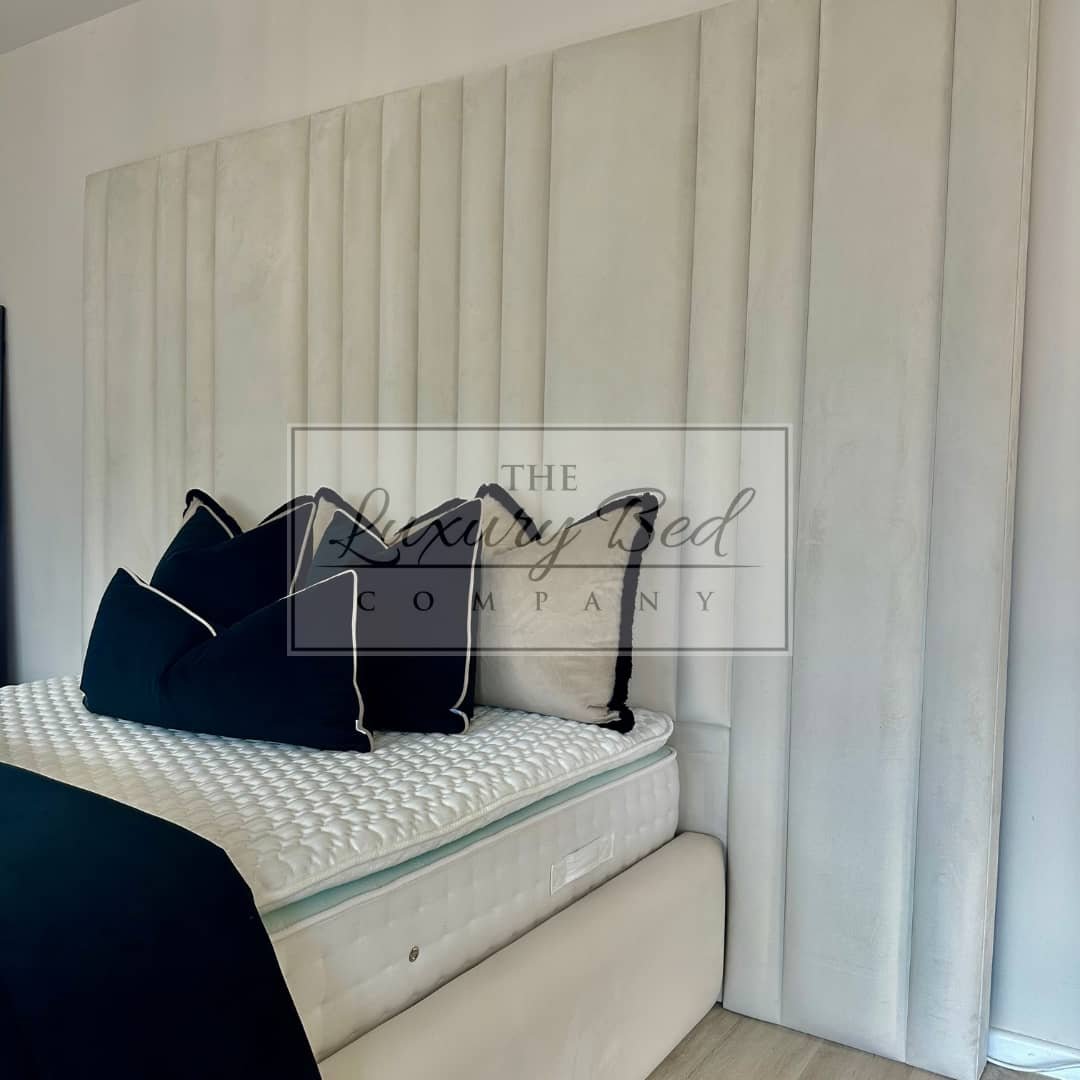 • Tall headboard with a symmetrical mix of slim and wide panels