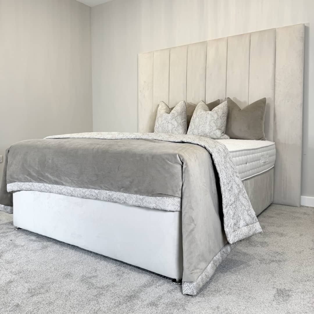 The Merry Divan Bed delivers the same striking headboard design in a clean, minimal layout. The panelled headboard adds structure and character, creating a strong focal point while keeping the overall look balanced and refined.