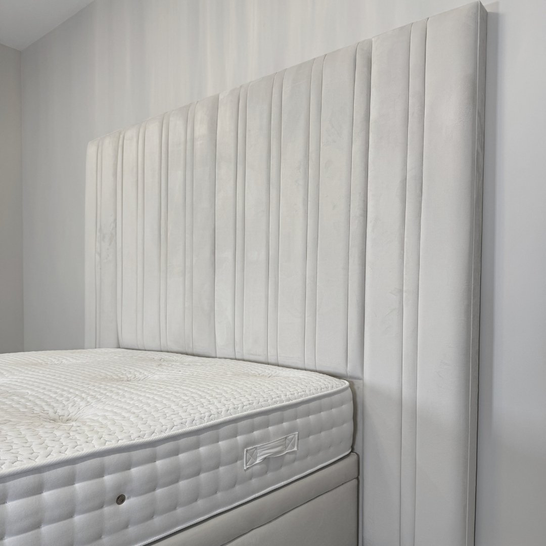 - Extra-wide Mount Vale headboard with mixed-width vertical panel detailing