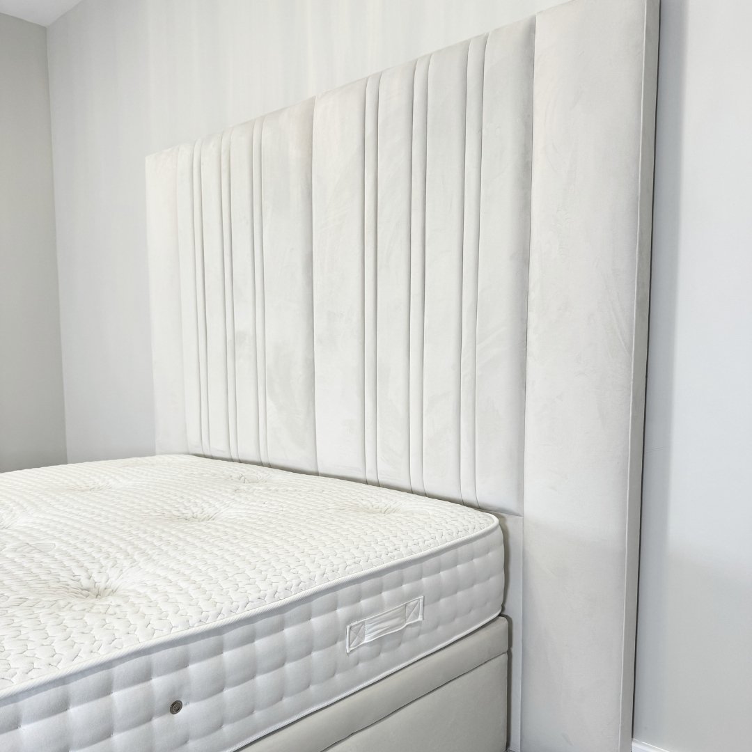 • Outer headboard panels extending beyond the bed base for dramatic width