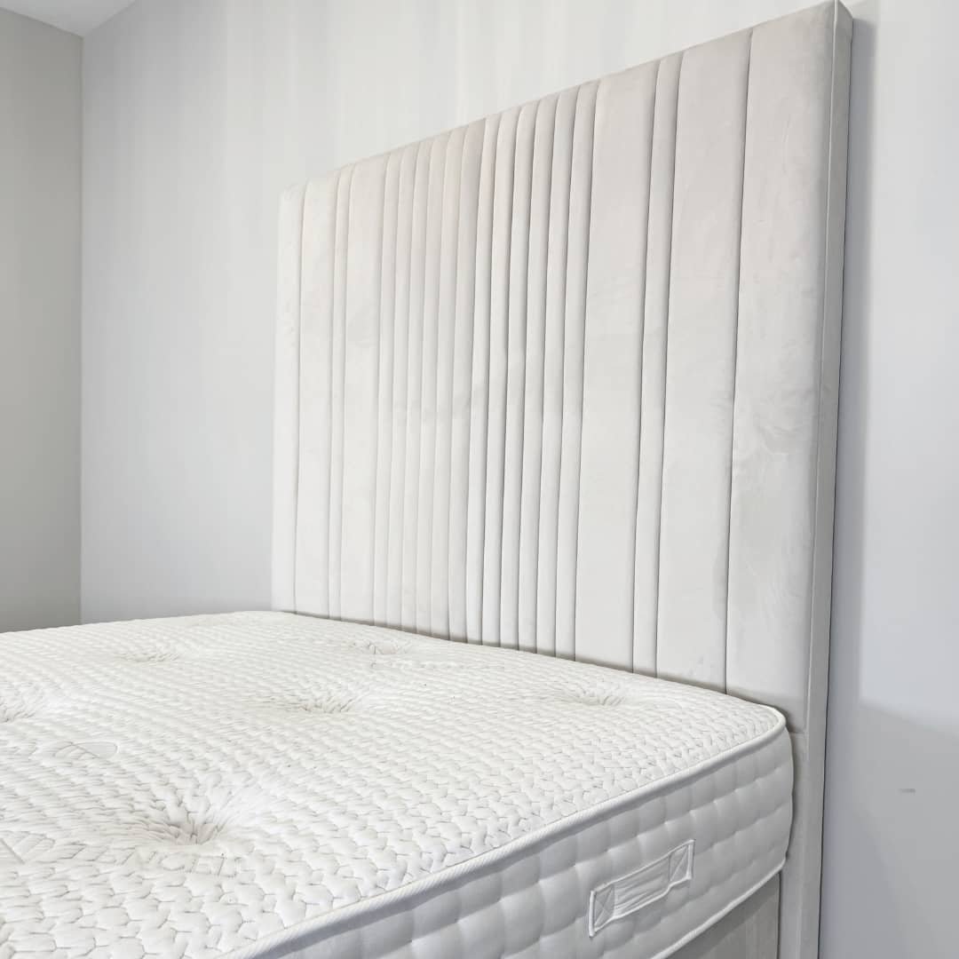 The Zen Divan Bed pairs its layered vertical-line headboard with a slim divan base and optional drawer storage for a clean, balanced finish.